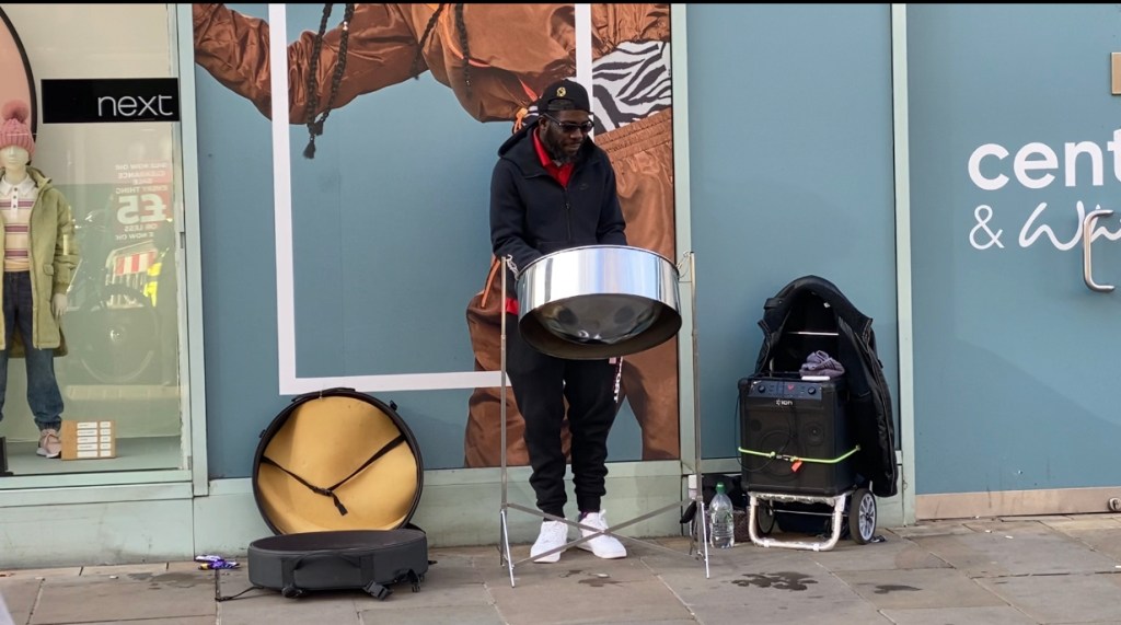 This steel pannist set up in Croydon High Street last Sunday and the CRO was lucky enough to be passing through so were there to hear him play. As he riffed his way over Ed Sheeran’s ‘Shape of You’ a good crowd gathered round to listen and forget about the cold January morning. Some were filming, others gently moving to the rhythm and a lady next to the CRO was brimming with happiness as she was reminded of old times in Jamaica.