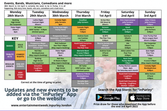 Purley Entertainment Week also has its own app, which can be downloaded so you don’t miss out on any events – with over 40 events scheduled, there will be plenty to see.