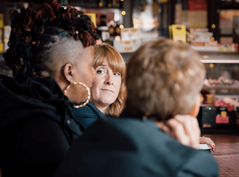 After visiting Croydon police station and the Croydon Gudwara in St James’s Road, Sir Keir and Ms Shawcross went for a coffee in a popular South Croydon delicatessen, La Spezia. Here he and Val Shawcross and Sarah Jones MP spoke with local residents and journalists about issues about policing issues relating to drug use and knife crime in the area.