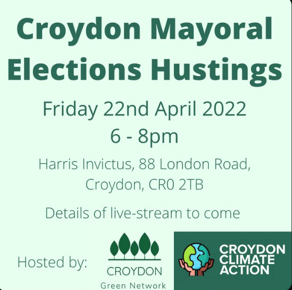 Croydon Climate Action are holding a mayoral hustings on the 22nd April between 6pm and 8pm. The hustings is going to be held at the highly accessible Harris Invictus Academy which is situated on the London Road, which sits on a number of bus routes and is very handy for West Croydon bus and train station.