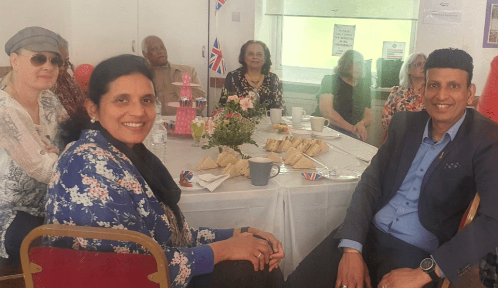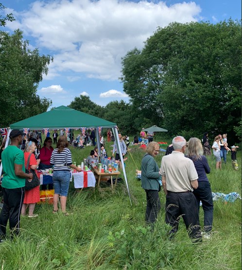 Earlier in the evening, the Indian Vegetarian and Vegan Society held a picnic and musical celebration of the beacon lighting in Lloyd Park. Members and guests of the Indian Vegetarian Society gathered to have a vegetarian or vegan picnic and members of the society entertained with music and dance before lighting up the park with glow sticks, torches and mobile phones to celebrate the Queen’s Jubilee.