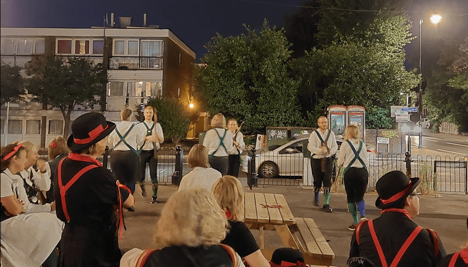 This year 13 Morris sides gathered for the event which was held at three venues in Addiscombe. This year’s venues were the Alma Tavern on the Lower Addiscombe Road, the Builders Arms in Leslie Park Road and the Oval Tavern in Oval Road.