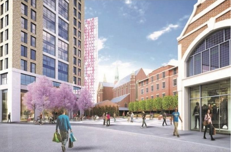 Artist’s impression of the new public space opening up Station Road through to St Michael’s Church in Poplar Walk, Saffron Square and the Whitgift Centre An historic building